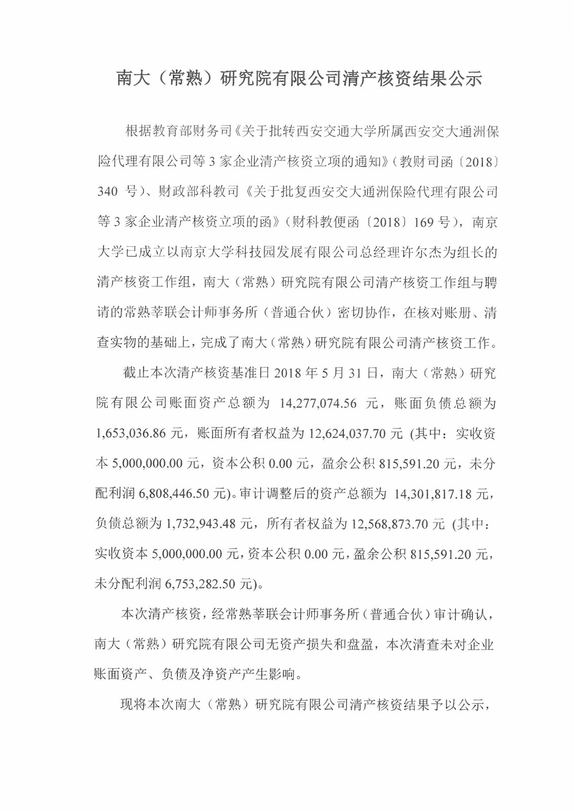 Result Announcement of General Checkup on NJUecoRICH’s Fixed Assests